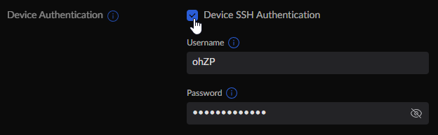 Scrollen wir ganz nach unten kommt der Punkt 'Device Authentication'. Hier setzen wir das richtige Häckchen und vergeben einen Benutzernamen und ein sicheres Passwort. Damit haben wir das Passwort für den SSH Zugriff auf die Geräte definiert und können eine Verbindung aufbauen.