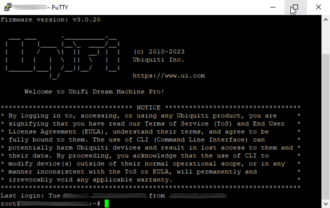 - Befehl eingeben: ssh "root@[LAN-IP-Adresse-DreamMachine]", also z.B. ssh